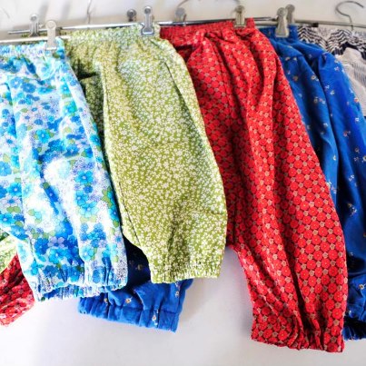 Retro infant pants, in huge array of new and recycled woven fabrics